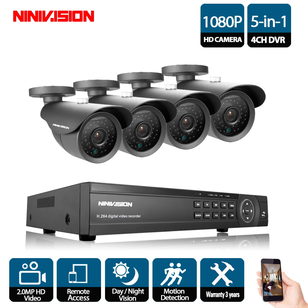 HOT Sale NINIVISION 1080P Video Surveillance System 4CH CCTV Security Kit with 4 2.0MP HD Outdoor Home Secur