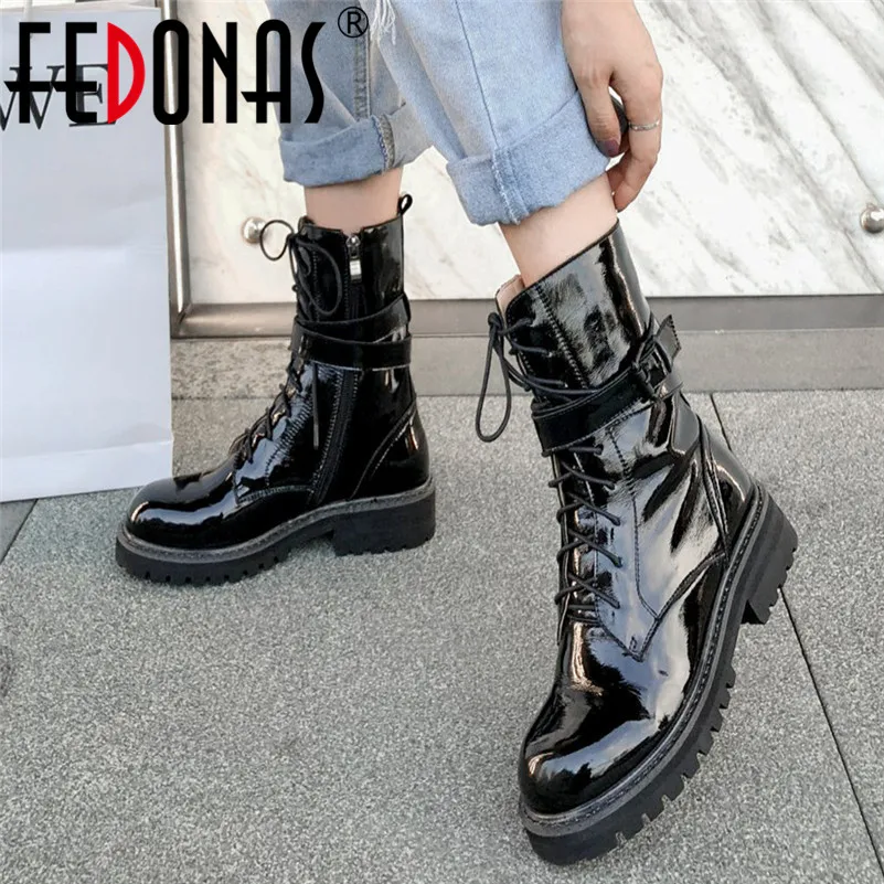 Best Quality FEDONAS Winter Buckle Zipper Female New Motorcycle Boots Cross Tied Women Ankle Boots Night Club Sh