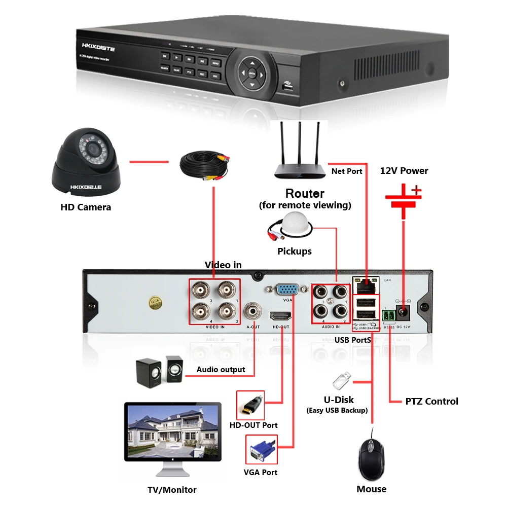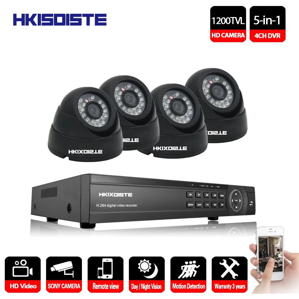 4CH 1080P HDMI DVR 1200TVL 720P HD Dome Indoor Security Camera System 4 Channel CCTV DVR Kit night