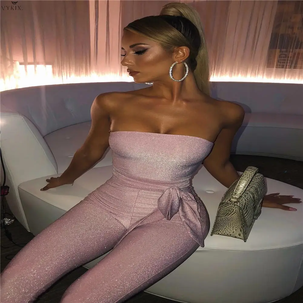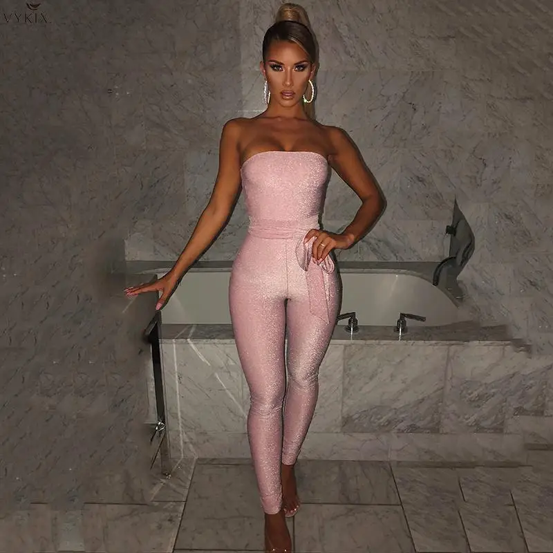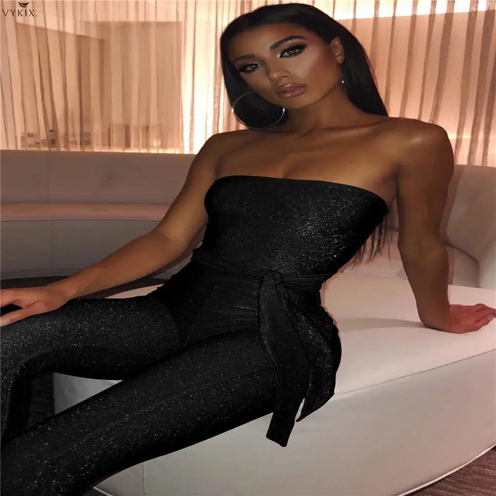 Best Spring Skinny Sexy Jumpsuit Women Romper Sleeveless Strapless Sashes Solid Night Party Jumpsuit Clu