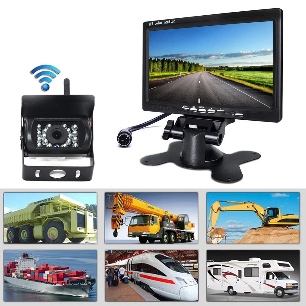 Podofo 7 inch 12V-24V TFT LCD Car Monitor Rear View Display Waterproof 4pin IR Night Vision Reversi