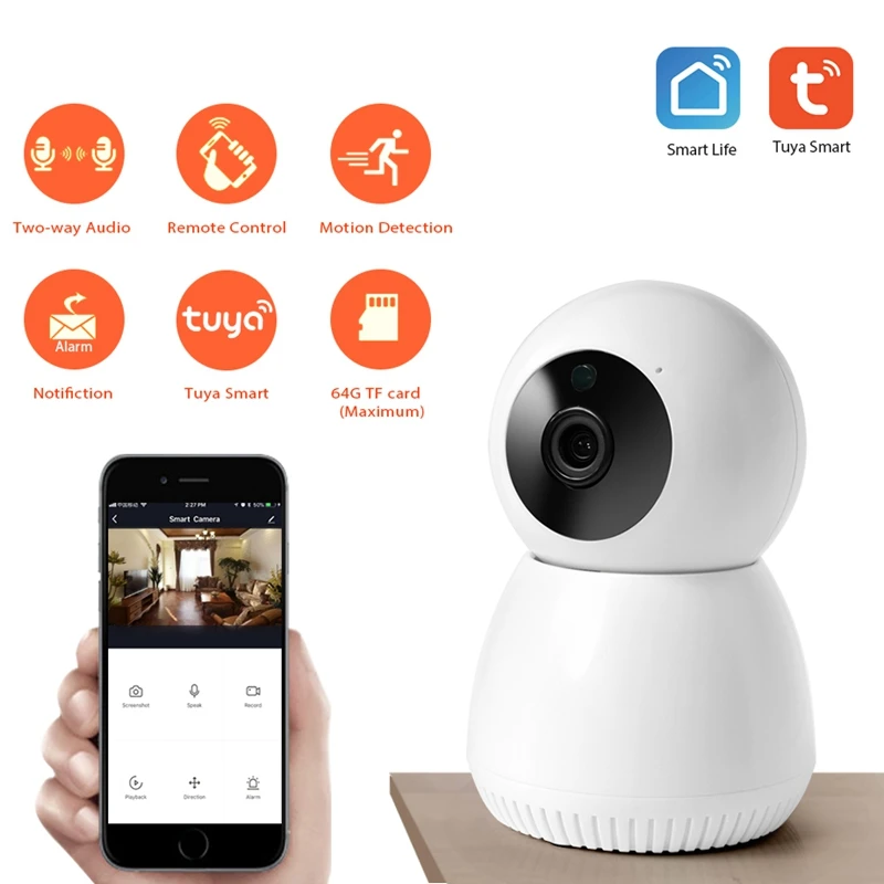Wifi Ip Camera Smart Wireless Security Camera 1080P 2MP Tuya Smart Life App Two Way Audio Motion De